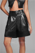 Bermuda Garder Negra – Sant‑tissima en cuero negro de grano fino que moldea la silueta y aporta un brillo sofisticado. Su largo medio estiliza la pierna y añade un toque de lujo urbano, perfecta para combinar con bodys, blazers o prendas oversize en looks nocturnos o editoriales.