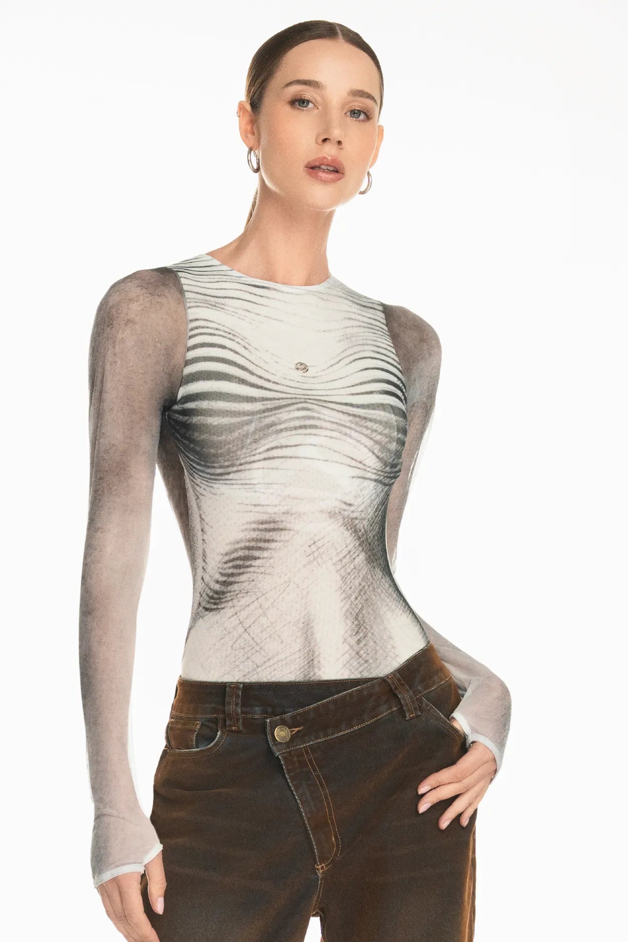 El Body Axis es la pieza que da nombre y alma a nuestra cápsula. Inspirado en el concepto del eje interno que sostiene a toda mujer, este body es una exploración de la arquitectura femenina en su estado más puro. Es la intersección perfecta entre la suavidad de la curva y la determinación de la recta.