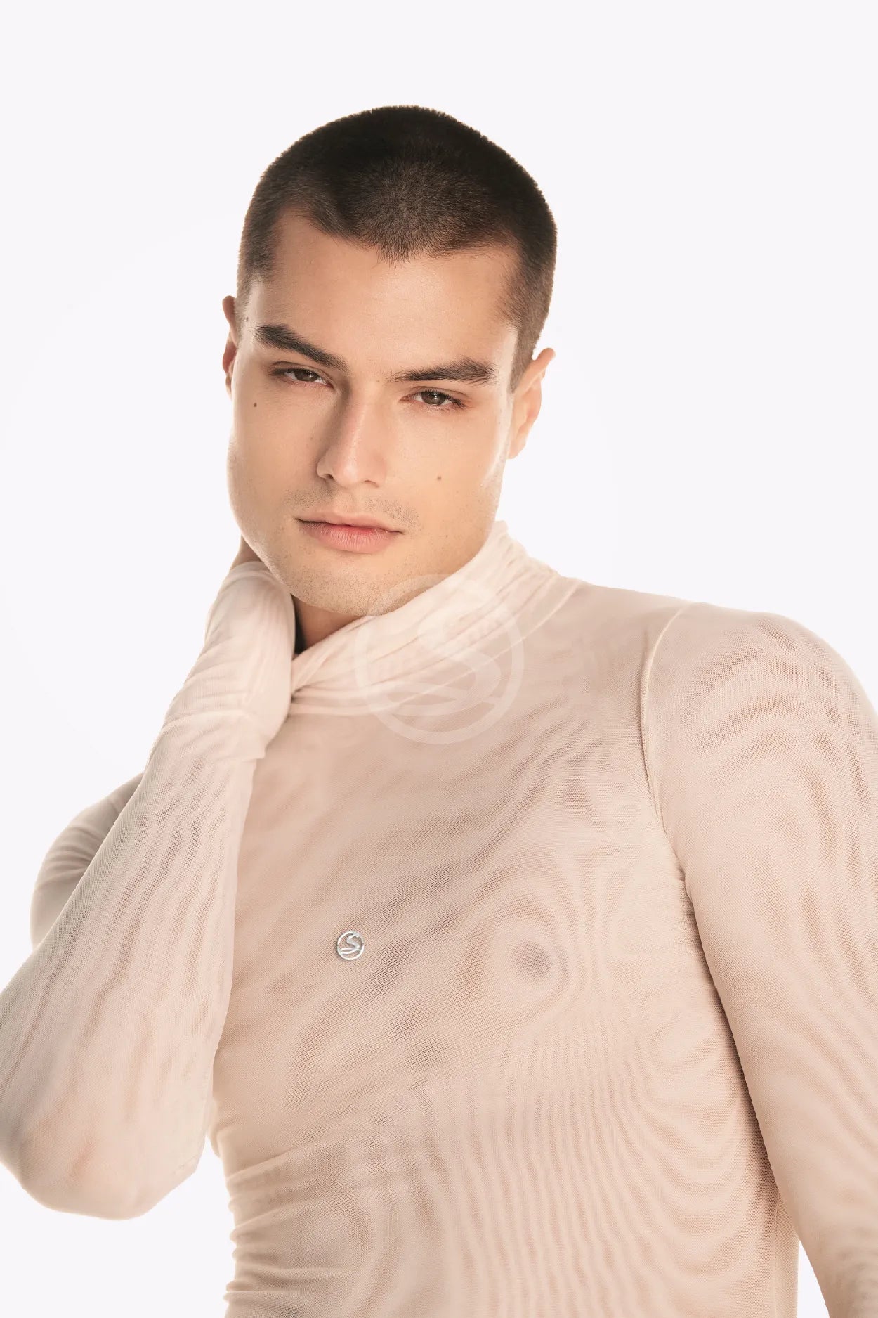 El Mesh Skin Nude S‑631 de Santísimas es una pieza clave para un look único. Confeccionado en malla semitransparente color nude, este top de silueta ajustada se adapta al cuerpo resaltando la figura con elegancia.